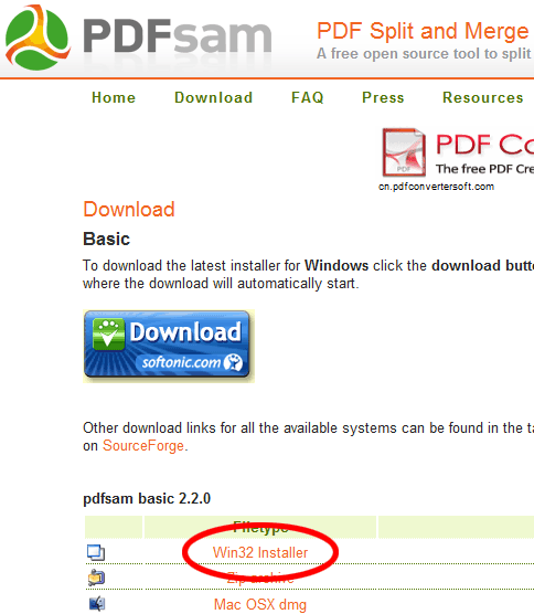 「pdfsam basic」の「Win32 Installer」をクリックすればOKです。