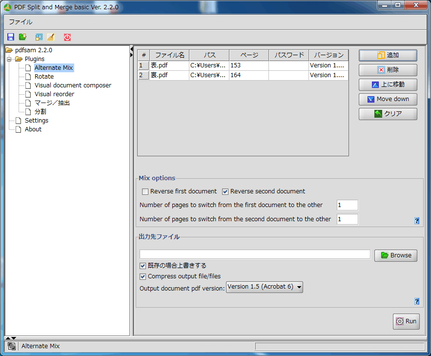 そこで便利なソフトが、裏面のページを逆順にしながらPDFファイルの合成を簡単に行うことのできるフリーソフトウェア PDF Split and Merge です。